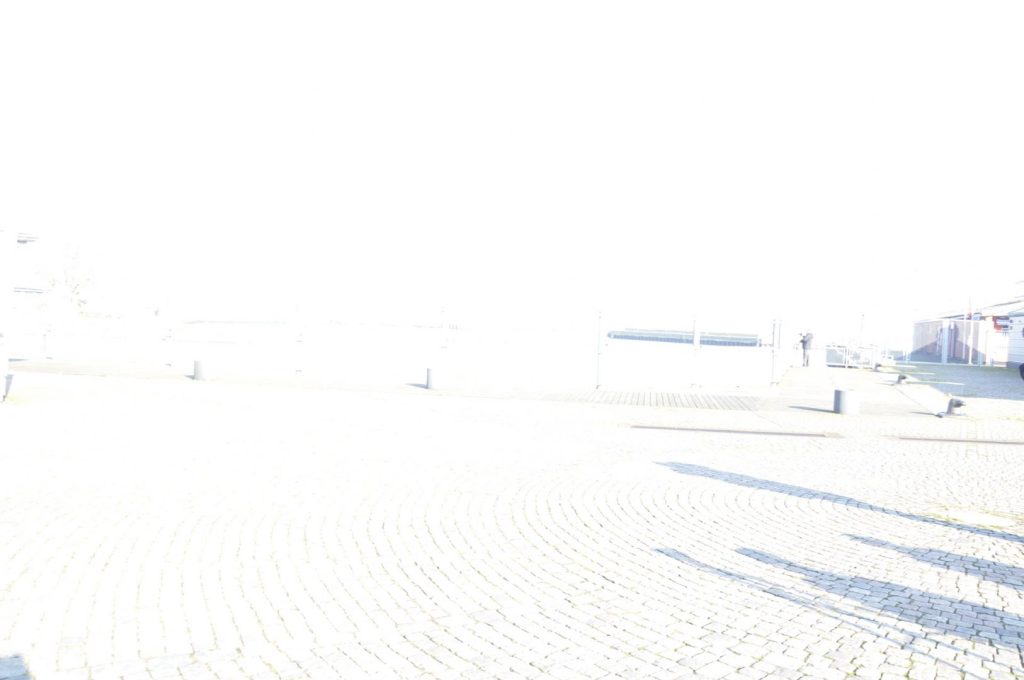 Nå åter till bilden; det visar sig att vi ser, om vi anstränger oss, att det är ett torg, man ser gatsten och ett par skuggor efter ett antal personer, detta utgör nedre hälften av bilden, någonstans i högerkantens mitt ser vi något som skulle kunna vara en byggnad, det gäller att ha livlig fantasi. Allt som allt en riktigt dålig bild.
